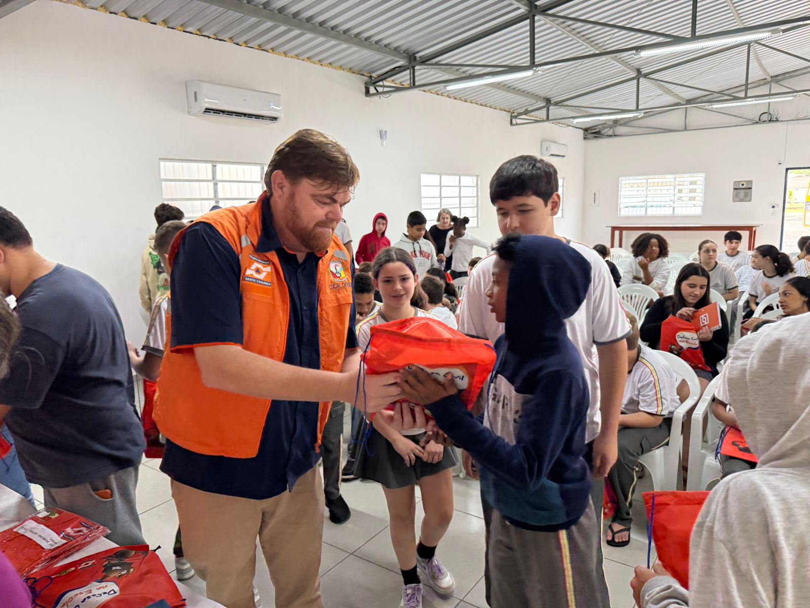 Alunos de Cocal do Sul recebem kits e iniciam programa Defesa Civil na Escola