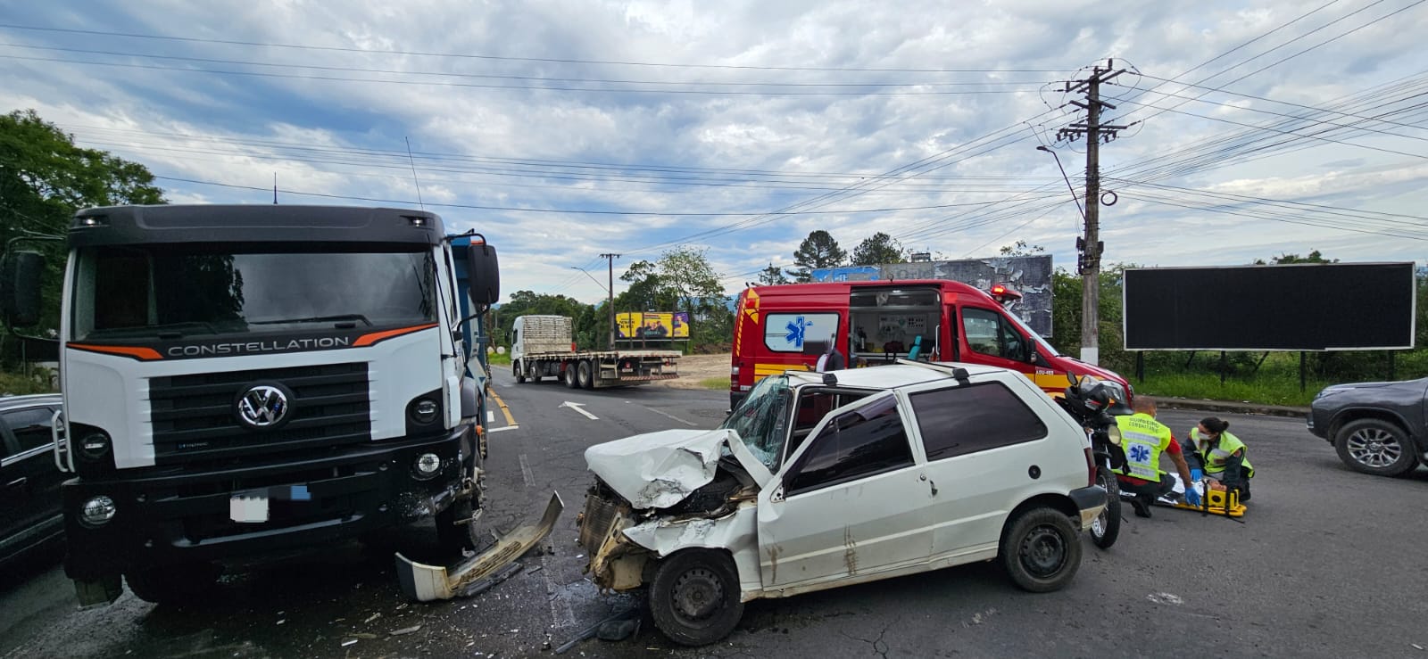 Um acidente entre uma carreta e um trem mobilizou o Corpo de Bombeiros Militar no início da tarde desta sexta-feira (29), em Morro da Fumaça.