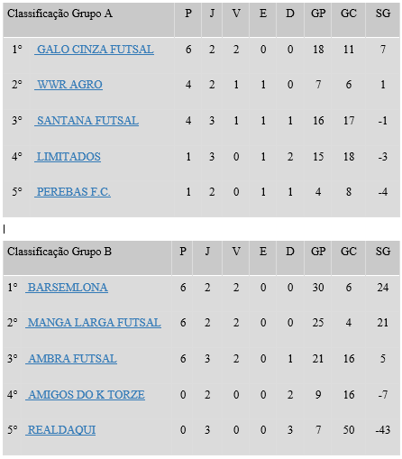Com os resultados, o Galo Cinza segue isolado na ponta do Grupo A, enquanto no Grupo B a disputa pela liderança é intensa entre Barsemlona, Manga Larga Futsal e Ambra Futsal, todos com seis pontos.