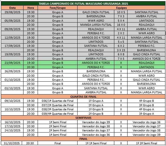 Na rodada passada, realizada na sexta-feira (19), o Galo Cinza Futsal manteve a liderança do Grupo A ao vencer os Limitados por 8 a 6 em uma partida equilibrada. Já pelo Grupo B, o Ambra Futsal superou o Amigos do K Torze por 7 a 5, conquistando pontos importantes na classificação.