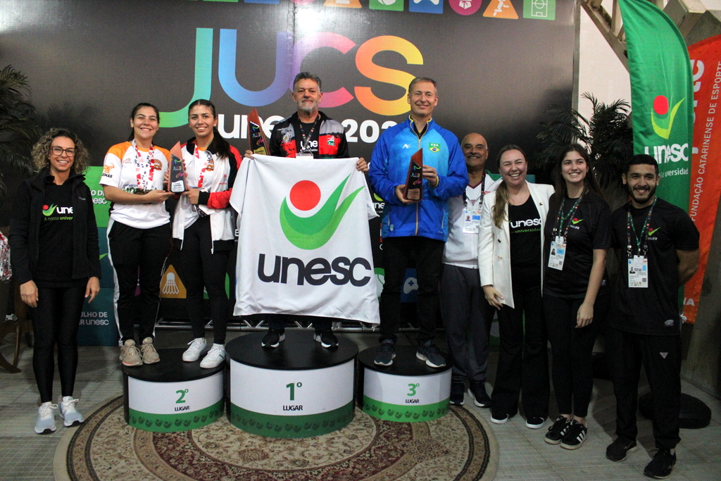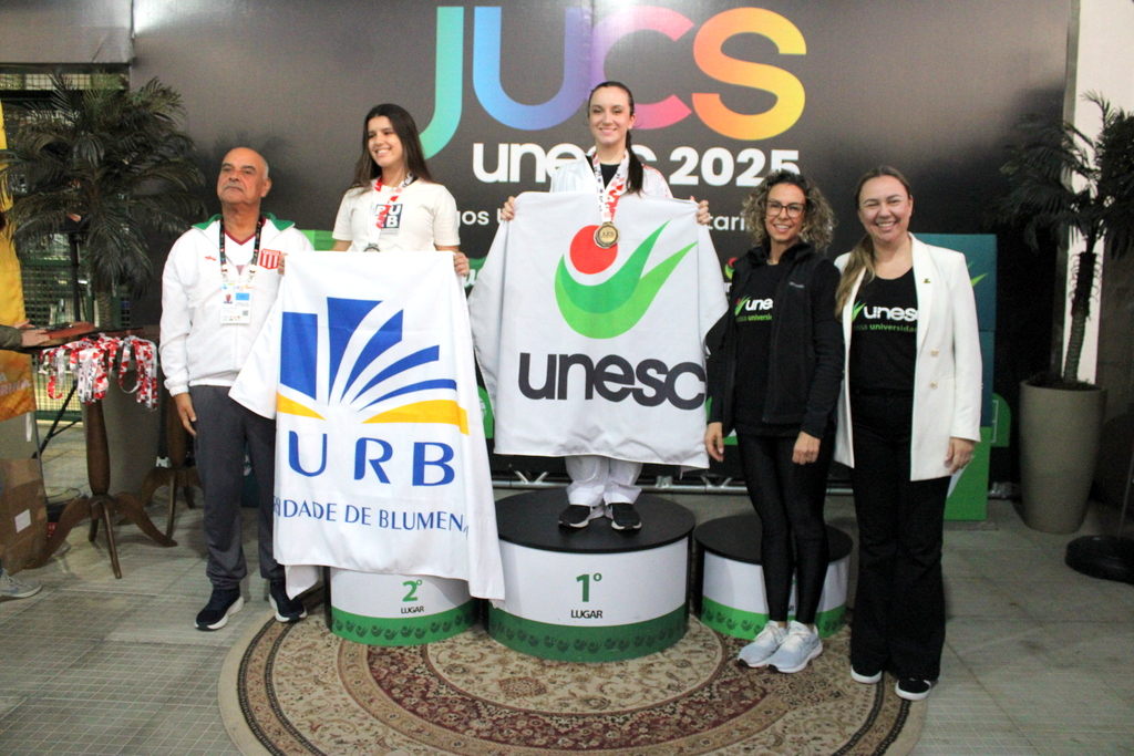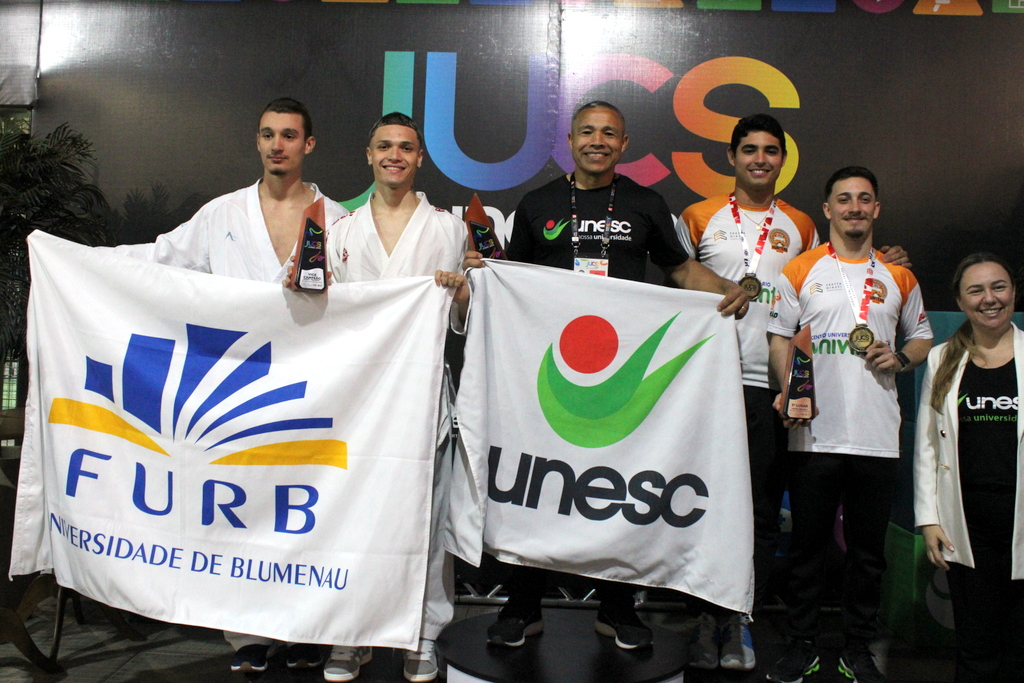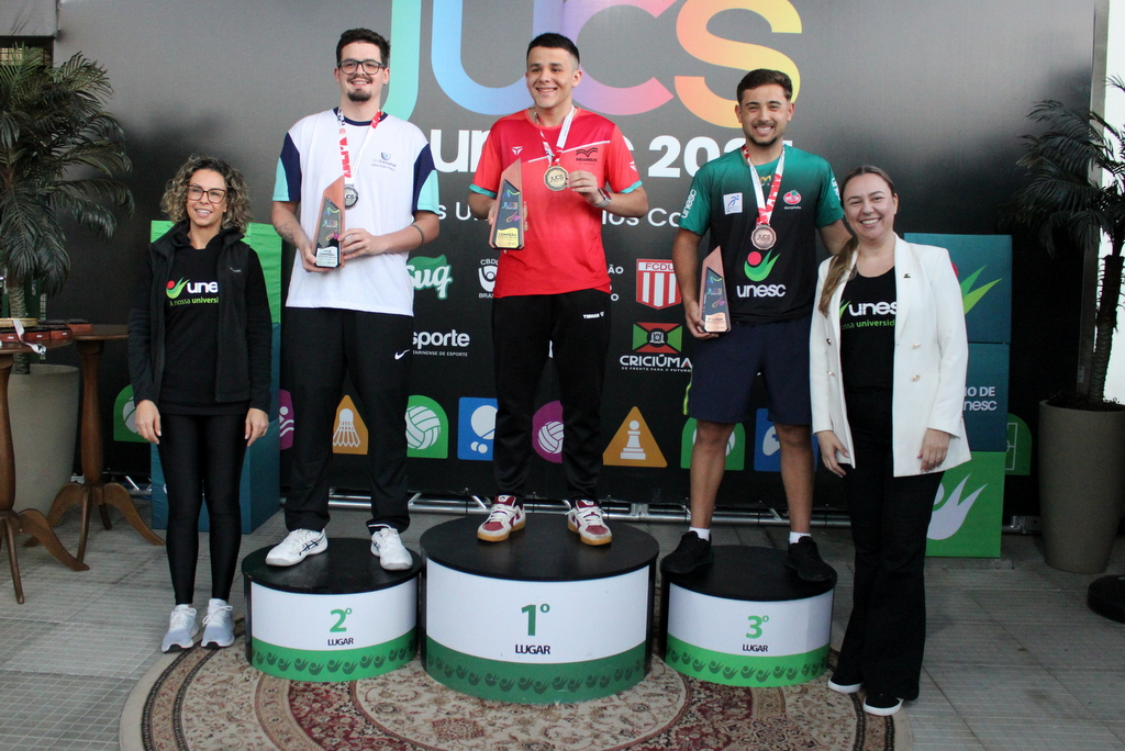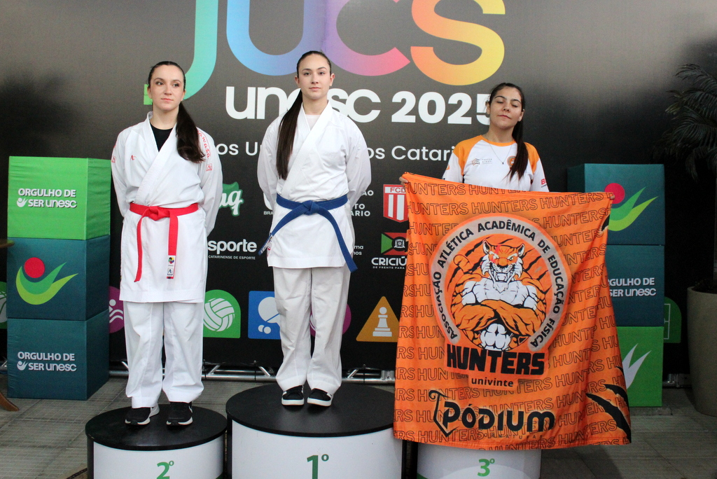 Os campeões de duas modalidades dos Jogos Universitários Catarinenses (Jucs), subiram ao pódio na tarde deste sábado (19). Após superaram os adversários, atletas do Tênis de Mesa e do Karatê receberam medalhas e troféus.