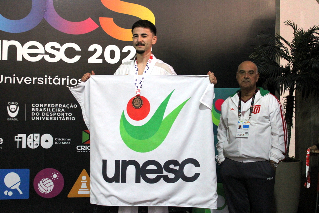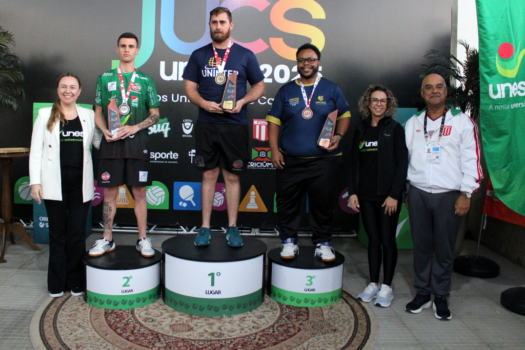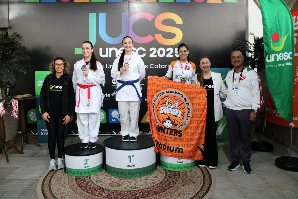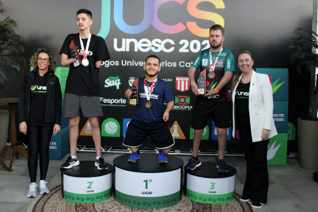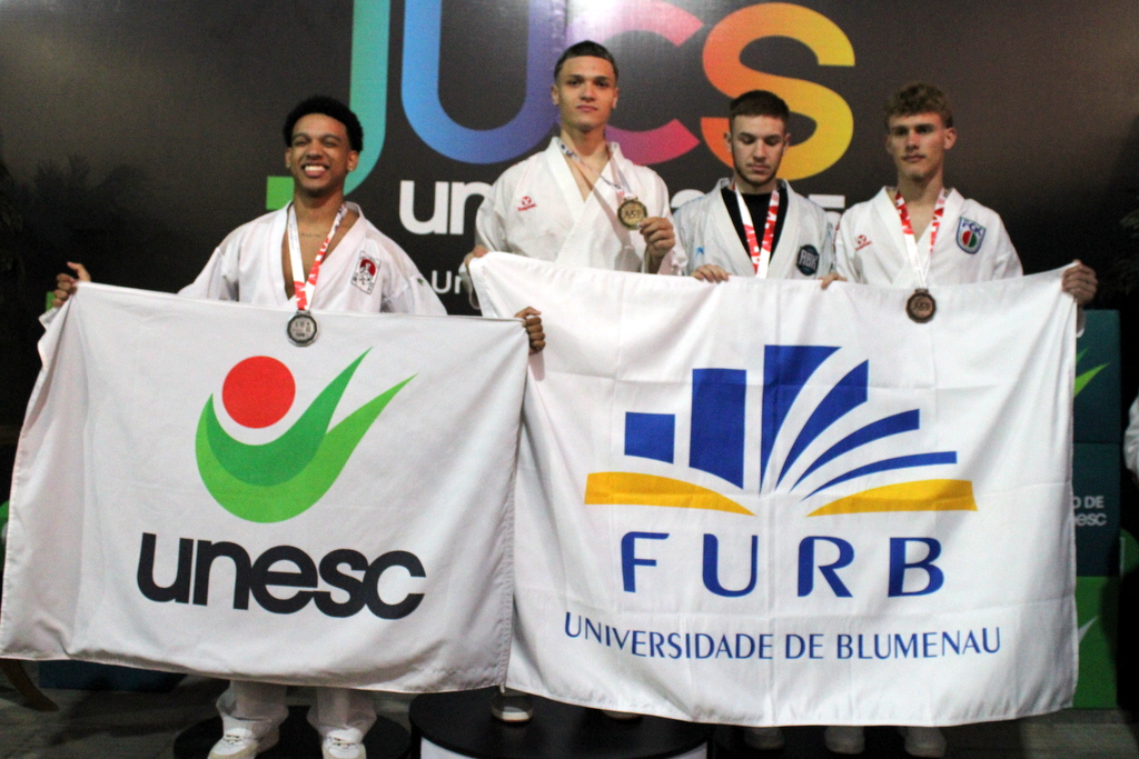 Os campeões de duas modalidades dos Jogos Universitários Catarinenses (Jucs), subiram ao pódio na tarde deste sábado (19). Após superaram os adversários, atletas do Tênis de Mesa e do Karatê receberam medalhas e troféus.