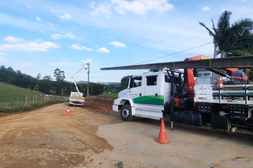 A Cermoful Energia está realizando o deslocamento de 13 postes de energia elétrica ao longo da estrada geral da comunidade de Rio Comprudente, em Cocal do Sul. A medida é necessária para viabilizar a obra de asfaltamento do trecho, que está sendo realizada pela Prefeitura Municipal.