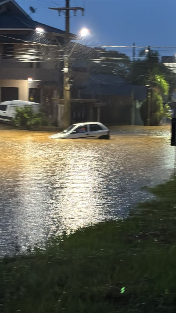 A forte chuva registrada na tarde desta terça-feira (17) provocou alagamentos e diversos transtornos em Cocal do Sul. Em menos de duas horas, foram contabilizados 72,4 milímetros de precipitação no município, volume considerado alto para um curto intervalo de tempo, conforme o Conexão Geoclima.