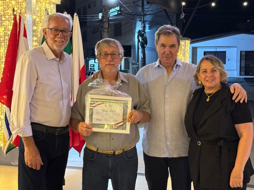 Representando a família Smania, Maristela Galli Albino falou sobre o significado da homenagem. “Foi um momento de muita emoção representar uma das primeiras famílias que colonizaram Cocal do Sul. Mesmo sem ter aprendido o idioma italiano, carrego um sentimento profundo de pertencimento e orgulho por essa história”, relatou.