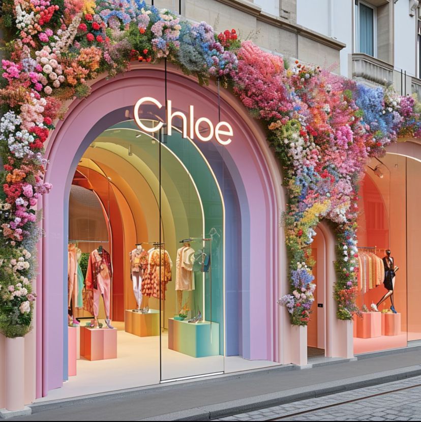 Lojas com cores vibrantes e iluminação pontual, mostrando o impacto da cor na experiência de compra
