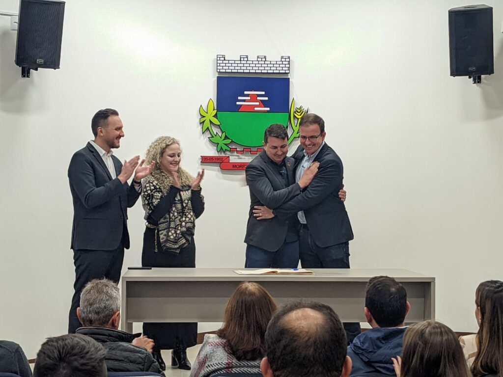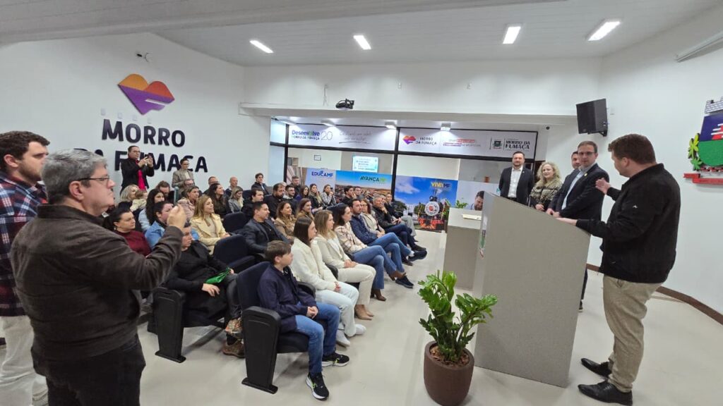 Já o prefeito em exercício de Morro da Fumaça, Davi Pellegrin, salientou que assume o comando do Governo Municipal fumacense com muita responsabilidade e respeito ao trabalho que vem sendo desenvolvido. “Agradeço ao prefeito Eduardo pela confiança e reforço o nosso compromisso com a continuidade dos projetos, da boa gestão e do atendimento à população. Vamos manter o ritmo e seguir avançando, sempre com diálogo, transparência e dedicação à nossa cidade. É uma honra contribuir ainda mais com o crescimento de Morro da Fumaça”. O ex-prefeito Baltazar Pellegrin, pai do prefeito em exercício, foi o primeiro a assinar como testemunha o livro de transmissão de cargo com a ata da posse.