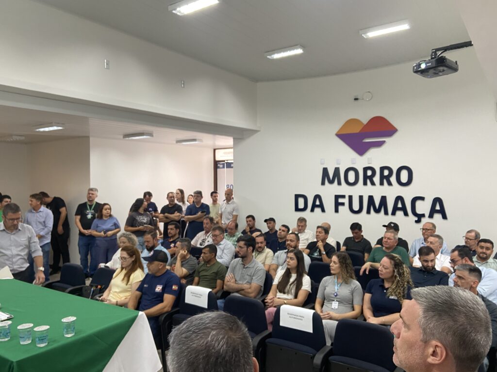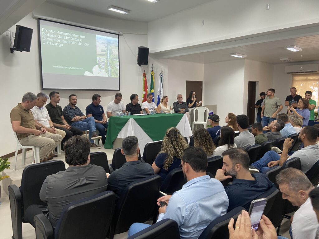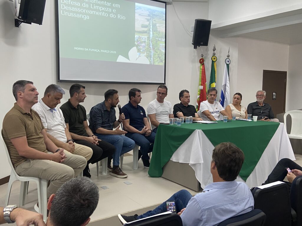 O Governo de Morro da Fumaça realizou, nesta segunda-feira (16), uma reunião da Frente Parlamentar em Defesa da Limpeza e Desassoreamento do Rio Urussanga. O encontro ocorreu no Salão de Atos Octávio Naspolini, na sede da prefeitura, e reuniu deputados estaduais, representantes do Governo do Estado, prefeitos, vereadores e lideranças da região. A reunião teve como objetivo alinhar o plano de trabalho para os próximos meses e definir questões orçamentárias relacionadas às ações de limpeza e desassoreamento do rio.