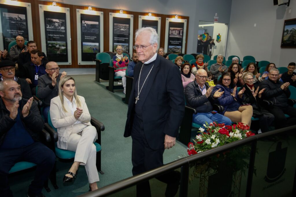 A Câmara Municipal de Forquilhinha realizou, nessa sexta-feira (18), a 2ª Sessão Especial Solene para homenagear Dom Leonardo Ulrich Steiner, arcebispo de Manaus e primeiro cardeal da Amazônia. O religioso, natural de Forquilhinha, teve sua trajetória reconhecida com a inclusão oficial no mural “Filhos Ilustres de Forquilhinha”, localizado no plenário do Legislativo.
