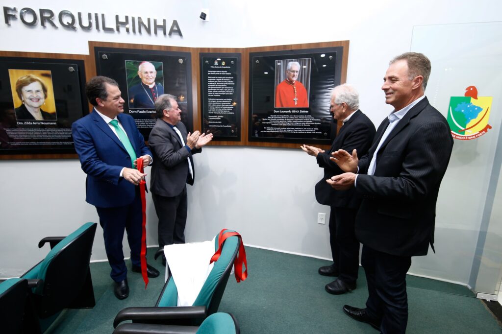 A sessão contou com o descerramento da placa no mural “Filhos Ilustres de Forquilhinha”, que já homenageia personalidades como Dra. Zilda Arns, Dom Paulo Evaristo Arns, Irmã Norberta Ogniewski e José Luciano da Silva (Zé Queijeiro).