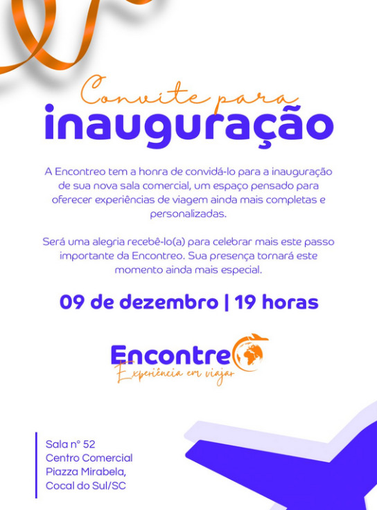 A agência de viagens Encontreo inaugura nesta terça-feira (9) seu primeiro espaço físico em Cocal do Sul, no Centro Comercial Piazza Mirabella, após anos atuando exclusivamente no formato digital. A abertura marca uma nova etapa para a empresa, que nasceu com a proposta de oferecer muito mais do que roteiros turísticos, mas vivências que ampliam horizontes e despertam novas percepções sobre o mundo.