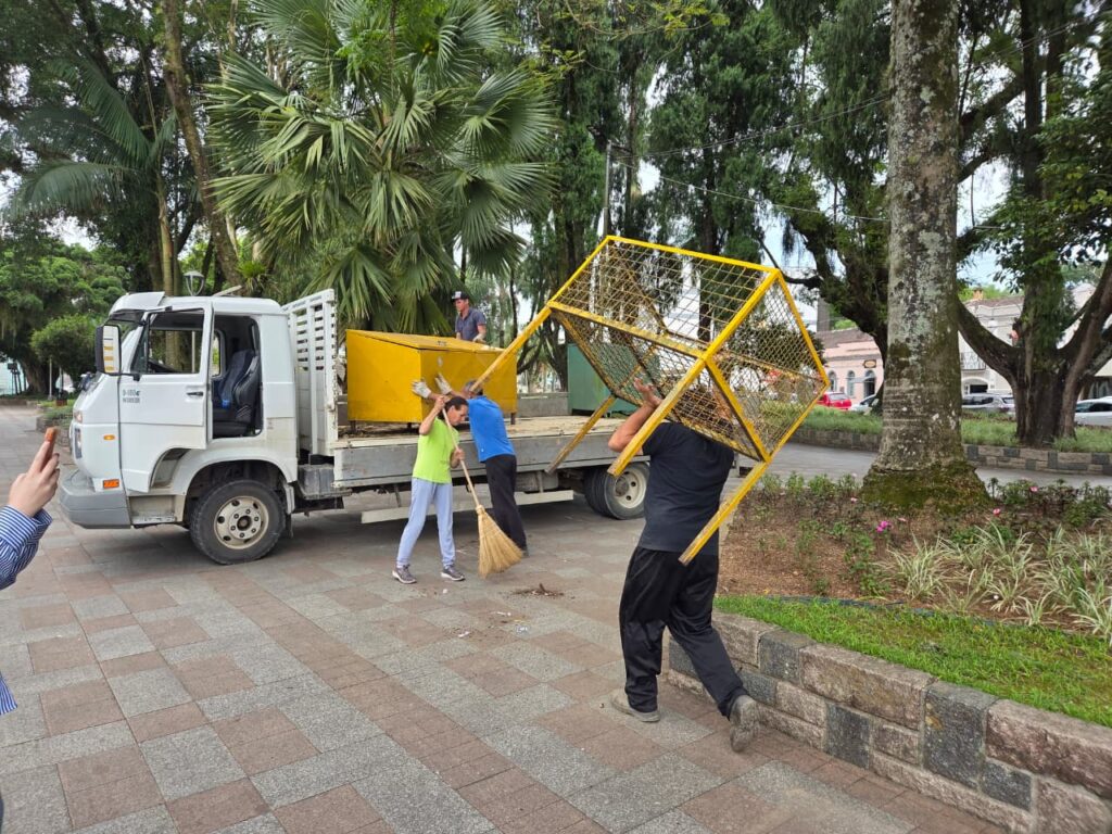 A retirada das grandes lixeiras de ferro no calçamento da Praça Anita Garibaldi foi concluída em Urussanga. Além disso, as lixeiras menores foram substituídas por 15 novas unidades destinadas ao descarte de pequenos resíduos. A medida faz parte do Programa Municipal de Gestão de Resíduos Sólidos, que prevê a modernização do sistema de coleta e a qualificação dos espaços urbanos.