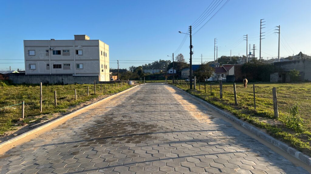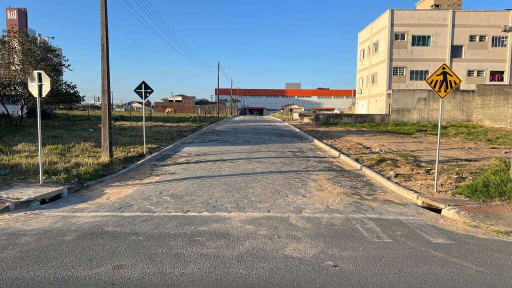 Já no bairro Jussara, a rua Laudelino Savaris também recebeu obras de pavimentação e está completamente finalizada. A intervenção abrangeu uma área de 1.266,66 metros quadrados, com 160,74 metros de extensão por 7,5 metros de largura. O projeto incluiu terraplanagem, drenagem pluvial, pavimentação com lajotas, sinalização viária e outras melhorias. O investimento foi de R$ 182 mil, sendo R$ 32 mil de recursos próprios e R$ 150 mil oriundos de emenda parlamentar do Deputado Estadual Volnei Weber, viabilizada pelo suplente a vereador Laênio da Silva.