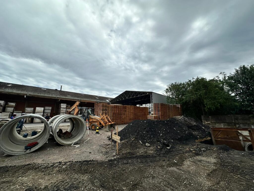 Os trabalhos começaram no pátio da indústria, um dos pontos mais críticos em períodos de chuva intensa. A nova rede vai captar e direcionar a água pluvial que desce da região do bairro Boa Vista, reduzindo o risco de cheias e prejuízos.
