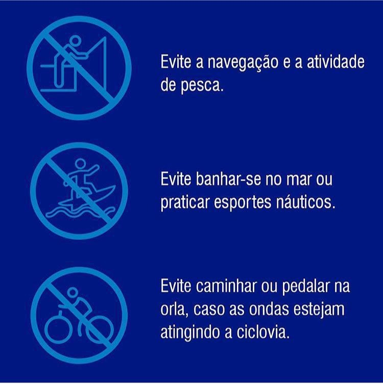 A Defesa Civil alerta para que pescadores, navegadores e banhistas evitem atividades marítimas durante o período. O pico da agitação está previsto para ocorrer ao longo do sábado (25).