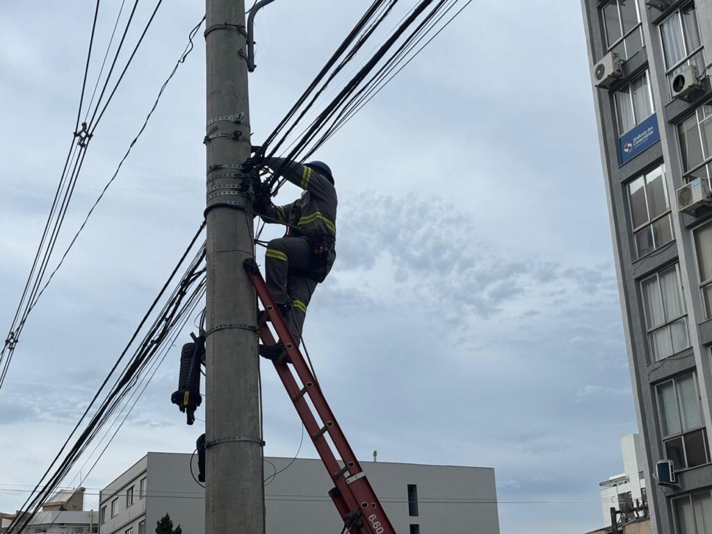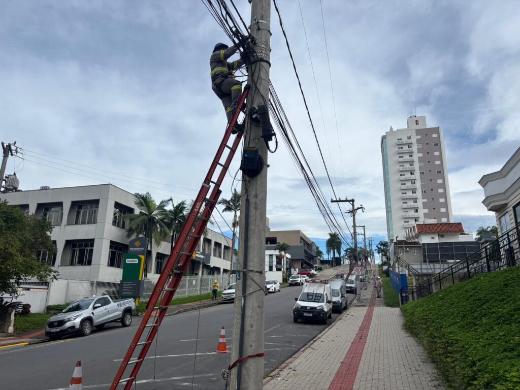 A Prefeitura de Criciúma, em parceria com a Celesc e empresas de telecomunicações, segue realizando a Operação Limpa Fios para remover cabos inativos, rompidos, irregulares ou obsoletos dos postes de energia elétrica. Nesta terça-feira (7), os trabalhos foram realizados na Avenida Getúlio Vargas, no Centro, e resultaram na retirada de quase meia tonelada de fios obsoletos, além da padronização e identificação da fiação existente. A próxima ação da Operação Limpa Fios também será na área central do município, na rua Santo Antônio, na segunda quinzena de abril.