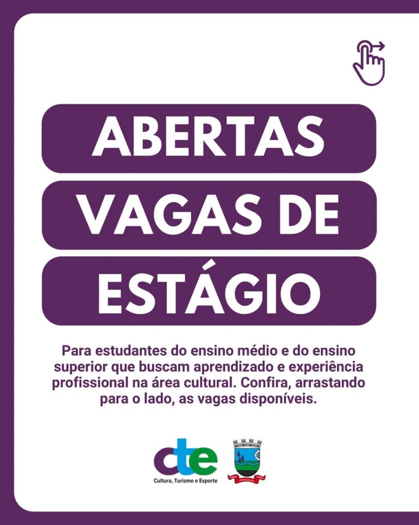 A Secretaria de Cultura, Turismo e Esporte de Urussanga está com vagas de estágio abertas para estudantes do ensino médio e do ensino superior. As oportunidades são voltadas a quem busca adquirir experiência profissional, conhecer a rotina do serviço público e colaborar com ações culturais desenvolvidas pelo município.