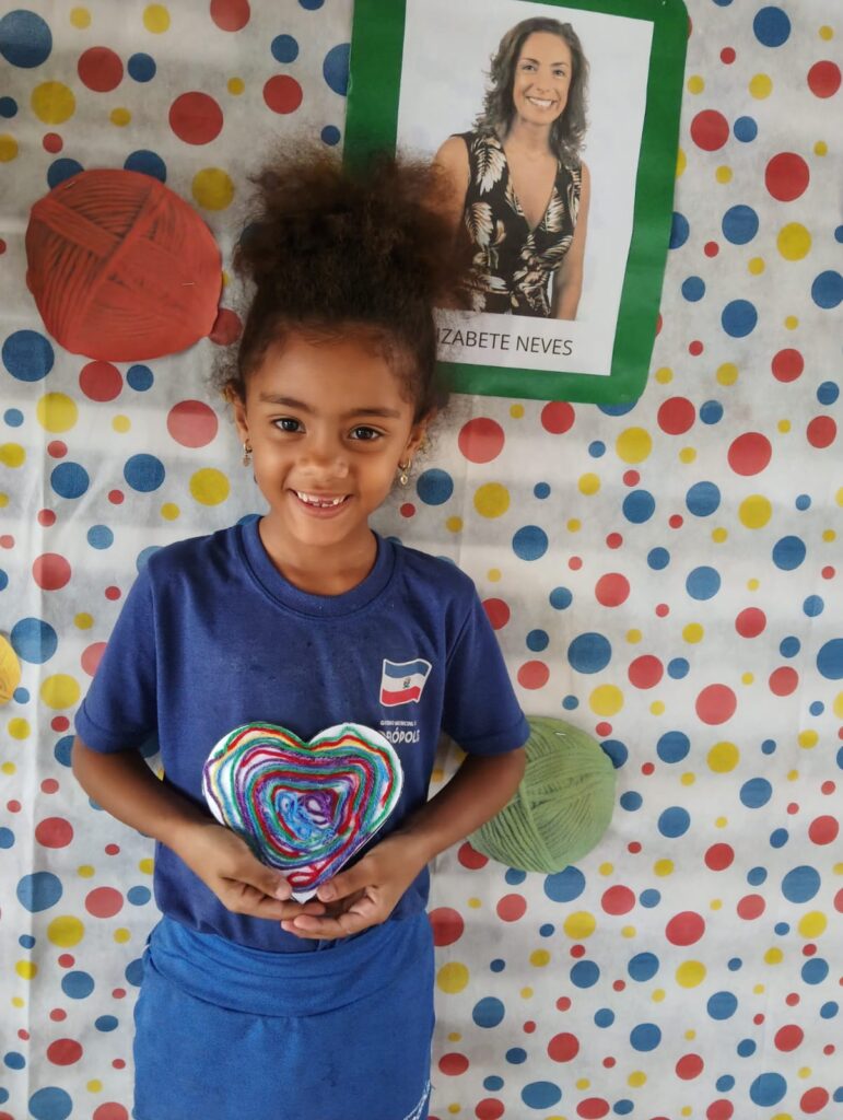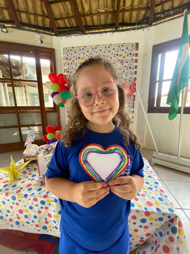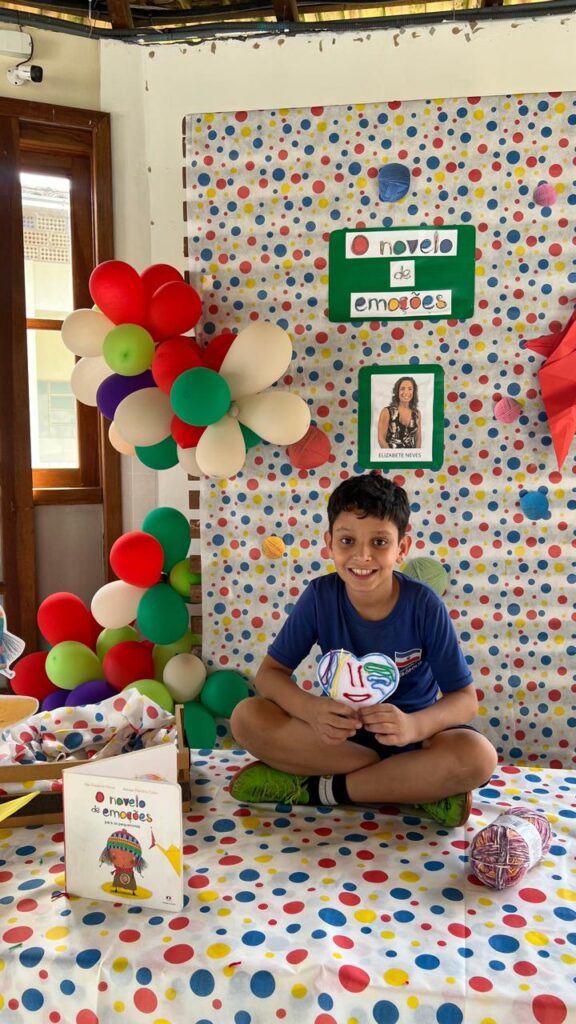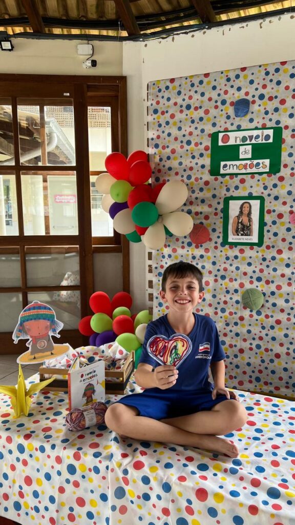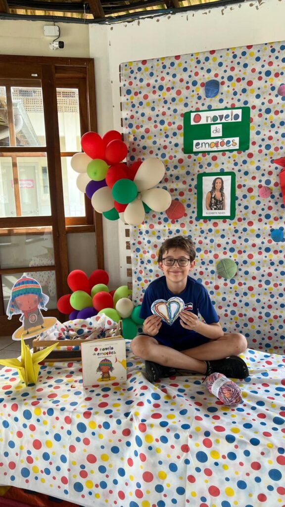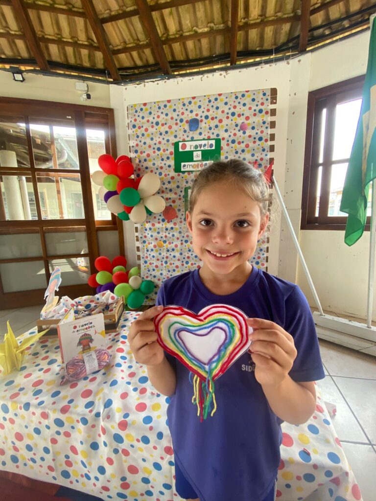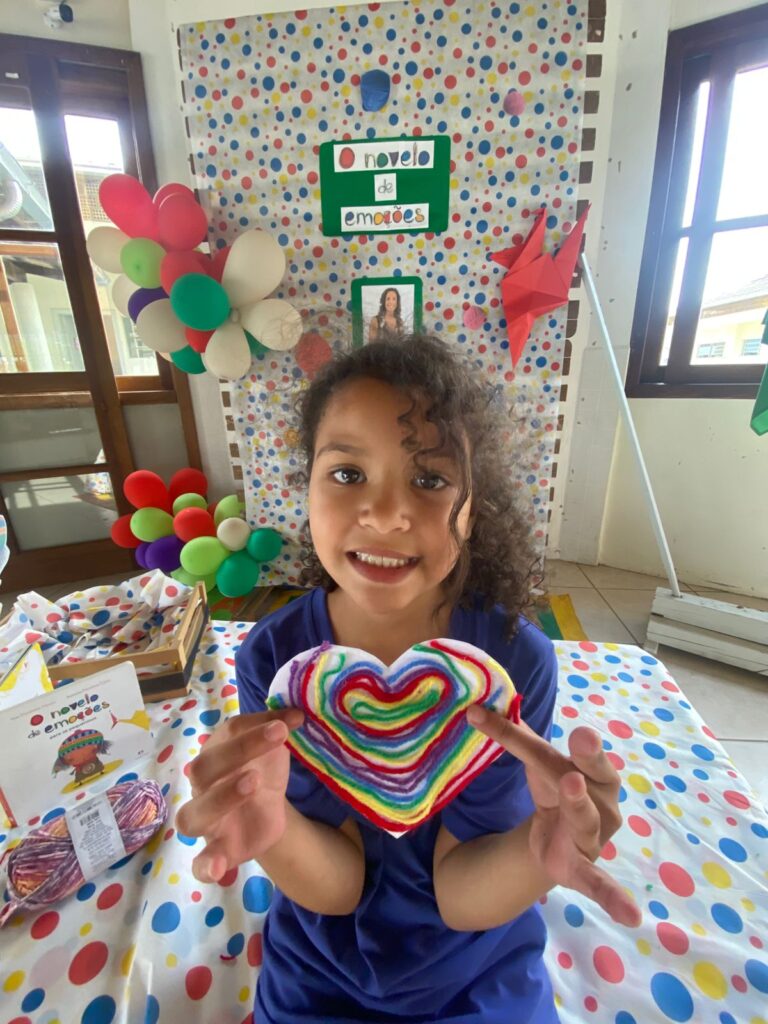 Assim como em todas as edições, após a contação da história, os alunos participaram de atividades significativas e criativas. Eles confeccionam móbiles de corações com novelos de lã nas cores verde, vermelho, azul, amarelo e roxo, representando as diferentes emoções.