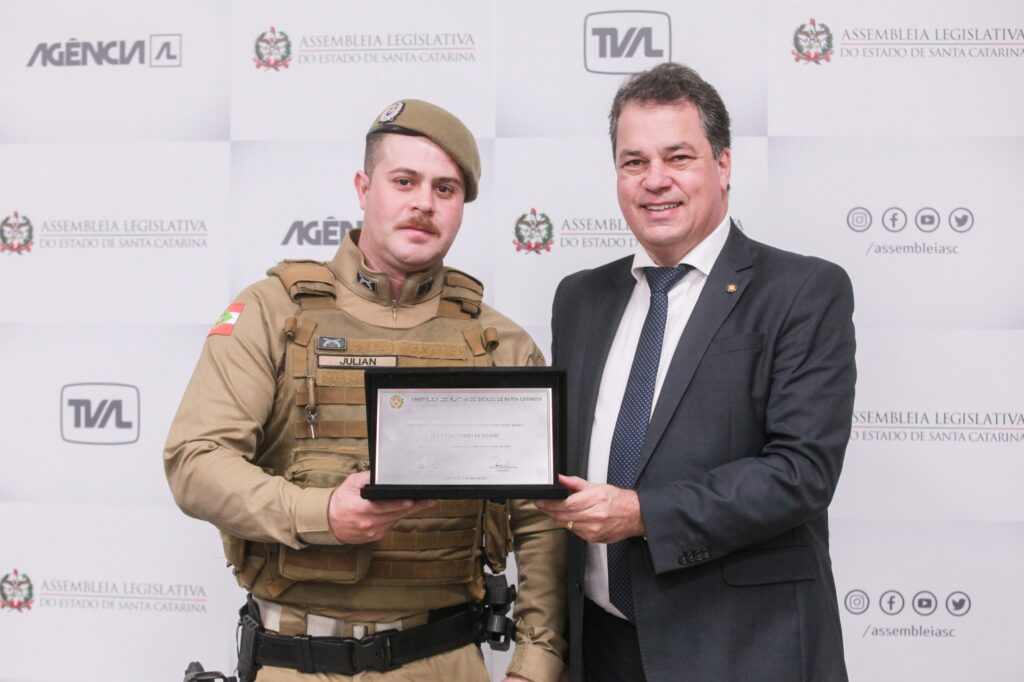Para o deputado Minotto, reconhecer esse tipo de atitude é uma forma de valorizar quem está na linha de frente, muitas vezes arriscando a própria vida para proteger a população. “O Soldado Julian, em momento de extremo risco, demonstrou não apenas coragem, mas um compromisso inabalável com a vida, a segurança e o bem-estar da nossa sociedade. Sua ação rápida e firme salvou vidas, e, mais do que isso, nos inspira a acreditar na força do serviço público e na nobreza da missão policial”, destacou o parlamentar.