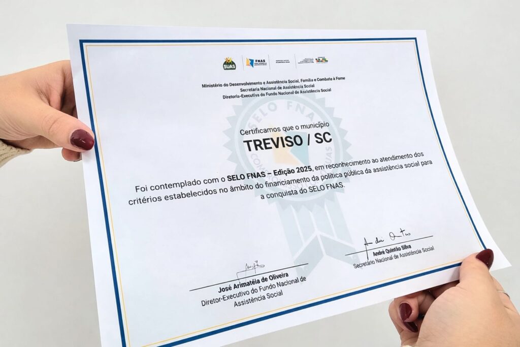 Treviso vem fazendo história em muitas frentes de governo, o que tem deixado a cidade sempre em evidência. Desta vez, não foi diferente com a secretaria de Assistência Social, Habitação e Cultura que recebeu pela primeira vez o SELO FNAS – edição 2025, do Ministério do Desenvolvimento e Assistência Social, Família e Combate à Fome, junto da Secretaria Nacional de Assistência Social, que reconhece o atendimento aos critérios estabelecidos no âmbito do financiamento da política pública da assistência social para a conquista do selo.