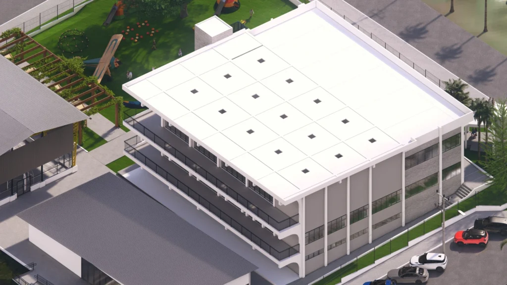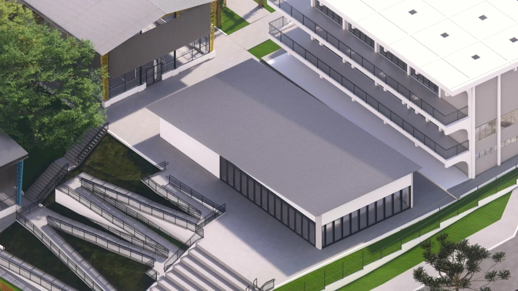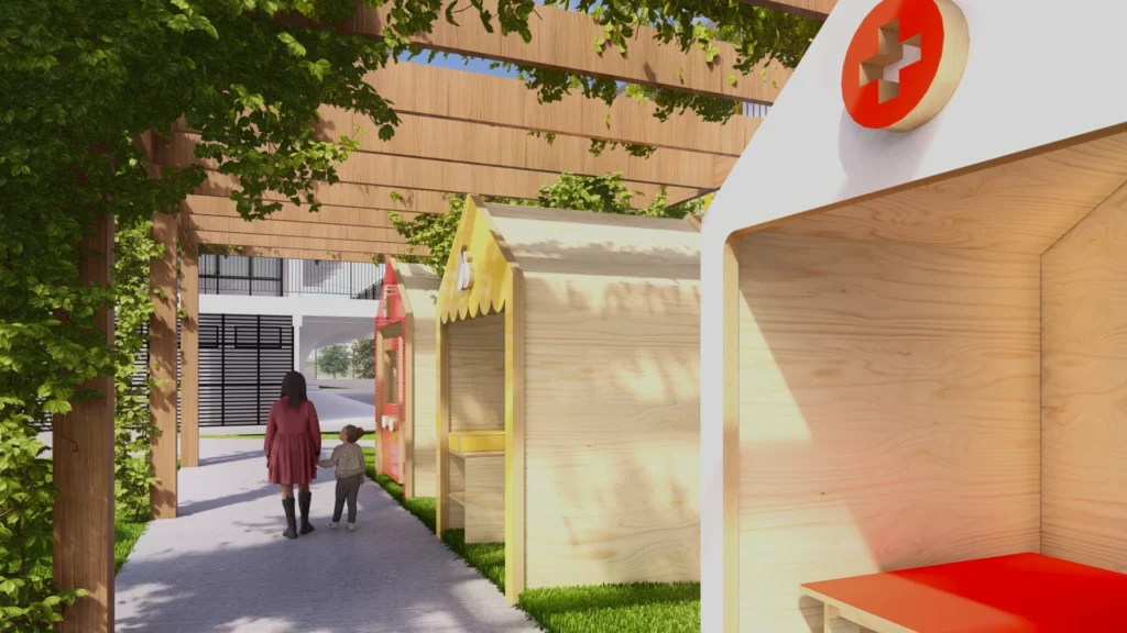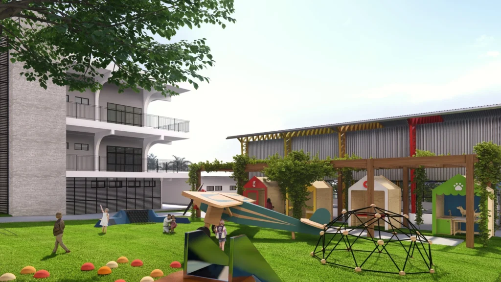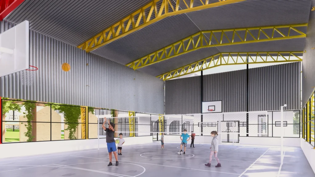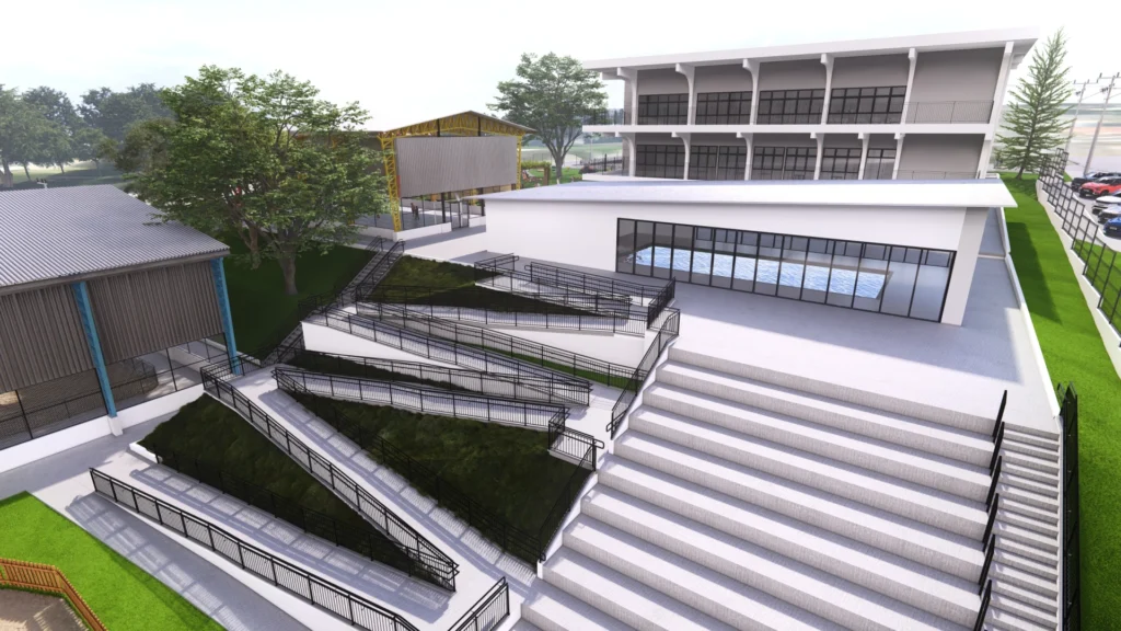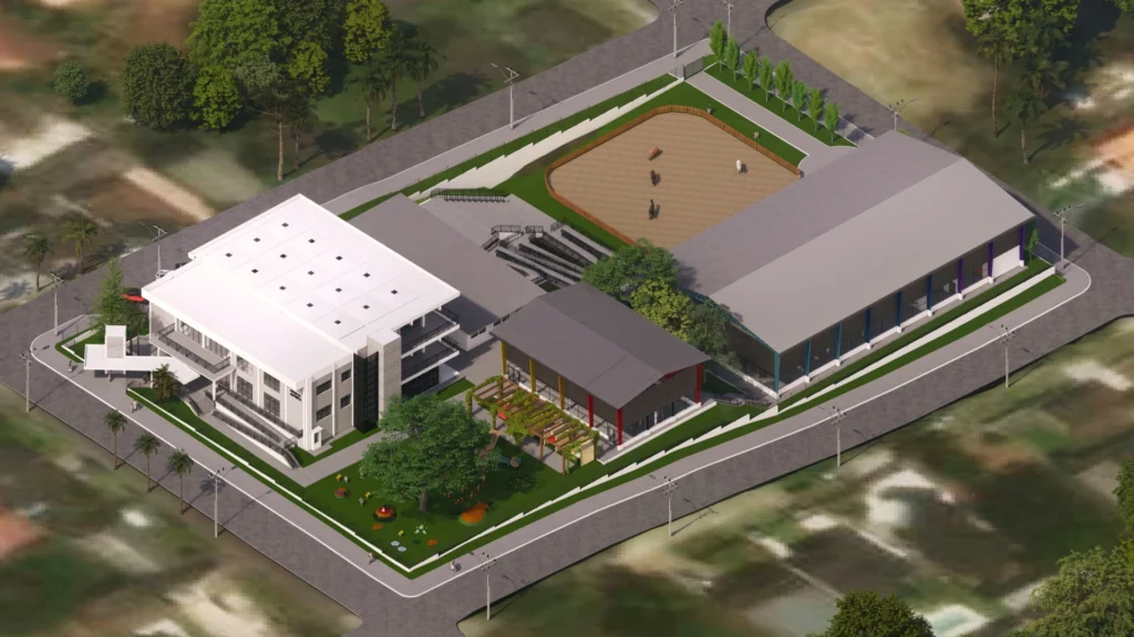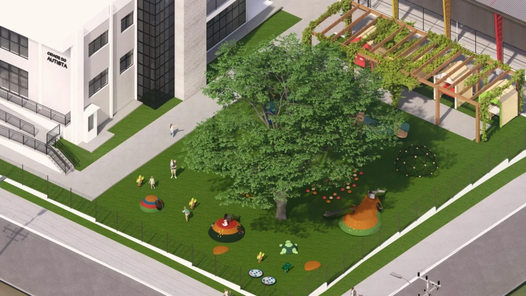 O projeto inclui ainda uma série de espaços externos planejados para atividades terapêuticas, esportivas e de lazer. Entre eles, estão o Jardim Sensorial e a Mini Cidade; uma quadra esportiva; uma piscina coberta e vestiários; rampa com arquibancada; e um estábulo. Esses ambientes serão utilizados em atividades como equoterapia, natação terapêutica, jogos, esportes adaptados e oficinas de socialização, fortalecendo o vínculo entre aprendizado, movimento e inclusão.