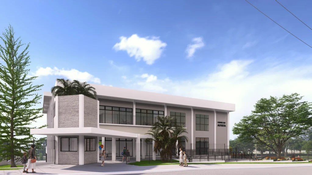 O projeto arquitetônico prevê uma estrutura ampla e moderna, com 2.087,93 metros quadrados, dividida em três pavimentos, com ambientes voltados ao atendimento educacional, terapêutico e familiar. O subsolo será destinado a ambientes de estimulação corporal e funcional, com espaço de psicomotricidade, brinquedoteca terapêutica, sala de terapia ocupacional e de fisioterapia, planejadas para favorecer o desenvolvimento motor, a integração sensorial e a autonomia nas atividades da vida diária. Contará também com cozinha e refeitório acessível, estruturados para o trabalho de hábitos alimentares e a seletividade alimentar.