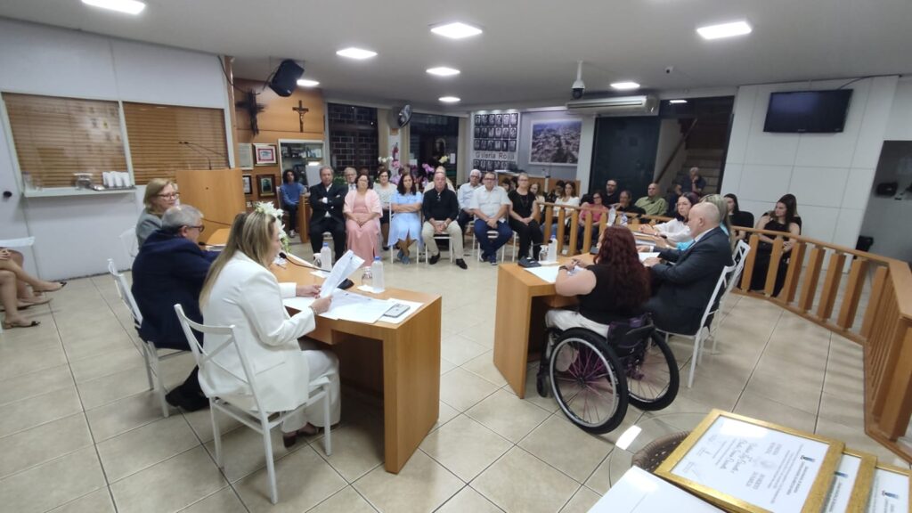 A vereadora Teresinha Zanatta, representando o Legislativo, destacou que a comenda reconhece publicamente o valor inestimável do matrimônio e da família. “A comenda tem exatamente esse propósito: reconhecer publicamente exemplos de união, companheirismo, responsabilidade e dedicação que inspiram novas gerações. Cada casal hoje agraciado representa uma história de trabalho, fé, coragem e partilha; histórias que engrandecem Urussanga e a tornam referência de afeto e de esperança”, declarou.