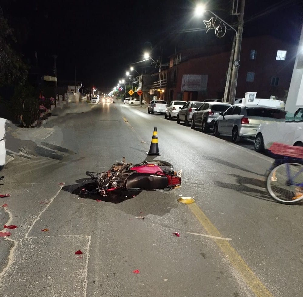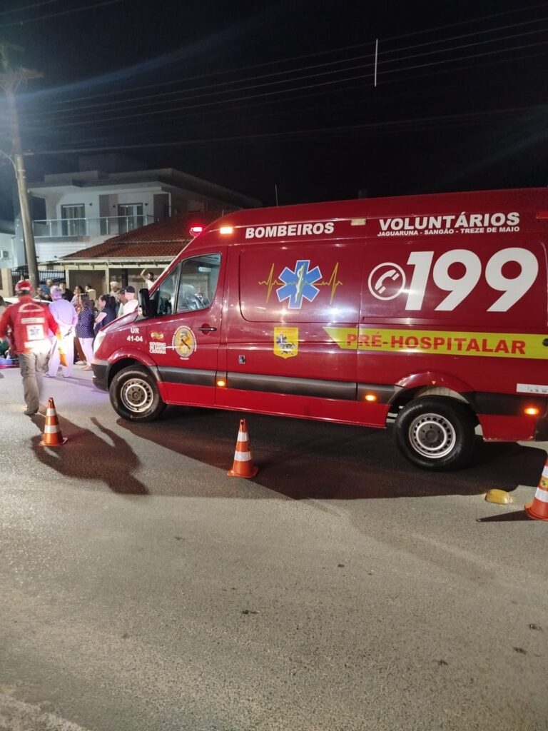 Um grave acidente envolvendo um carro e uma motocicleta foi registrado na Rodovia SC-100, no trecho Claudino Abel Botega, no bairro Camacho, em Jaguaruna neste domingo (16).