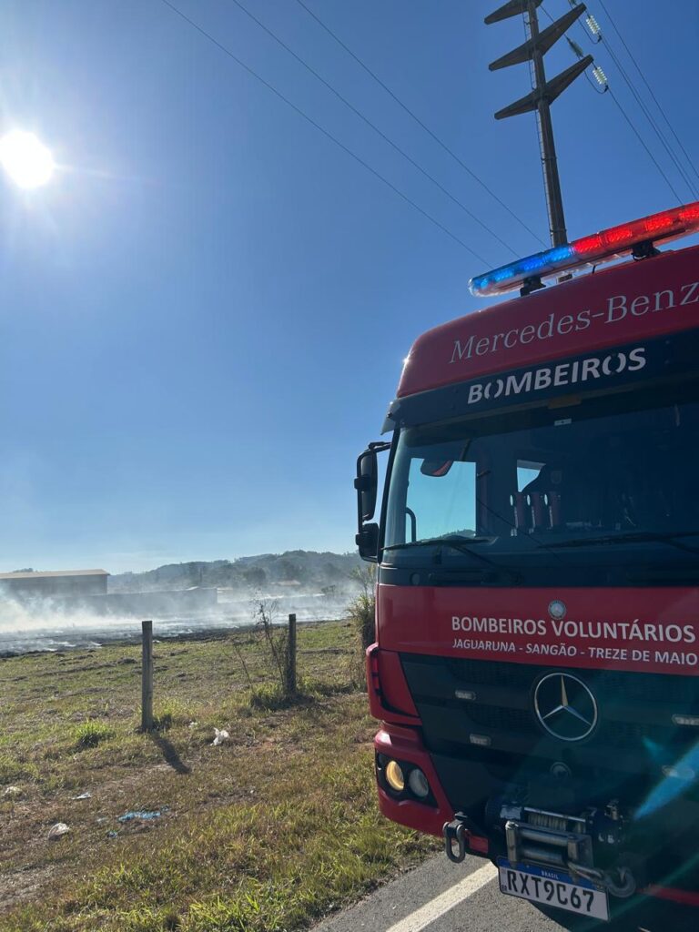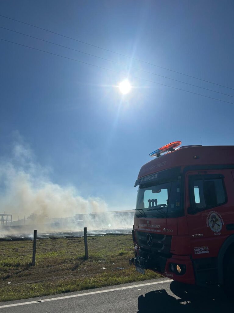 Dois incêndios em vegetação às margens de rodovias mobilizaram equipes de emergência em Sangão. O mais recente ocorreu na tarde deste domingo (20), por volta das 13h50, às margens da BR-101. As chamas, impulsionadas pelos ventos, se alastraram rapidamente e atingiram uma área de propriedade privada. O combate ao fogo foi realizado pelos Bombeiros Voluntários de Jaguaruna, com apoio do Corpo de Bombeiros Militar de Morro da Fumaça.