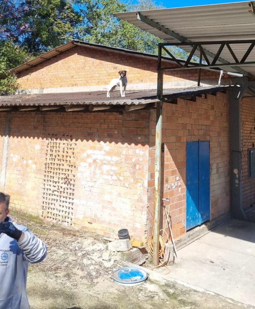 Um cachorro foi resgatado na manhã desta quarta-feira (24), após ser encontrado em situação inusitada: sobre o telhado de uma empresa industrial em Caravagio, em Nova Veneza. O caso ocorreu por volta das 8h47, na Rua 26 de Maio, e mobilizou o Corpo de Bombeiros de Forquilhinha.