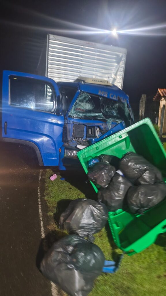 Na sequência, a guarnição foi até a empresa onde o furto aconteceu. O vigilante relatou que percebeu um caminhão manobrando no pátio em horário incompatível com movimentações autorizadas. Ao solicitar que o motorista estacionasse, o condutor acelerou bruscamente, avançou sobre a cancela de entrada, que ficou danificada, e fugiu do local com um dos pneus furado, seguindo em direção a um município vizinho.