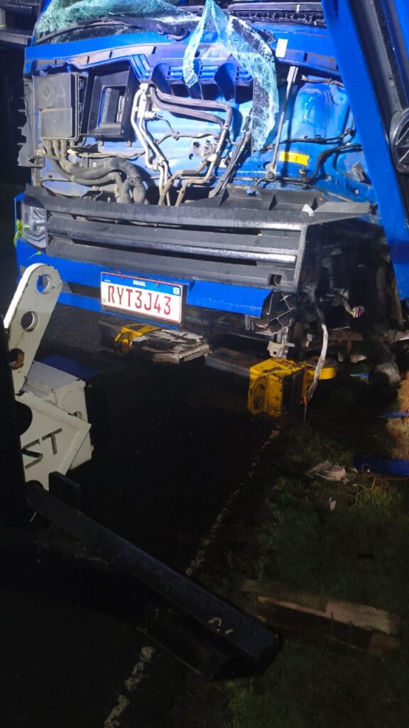 Veículo foi levado do pátio durante a madrugada, rompeu cancela na fuga e apresentava marcas de sangue na cabine após o acidente