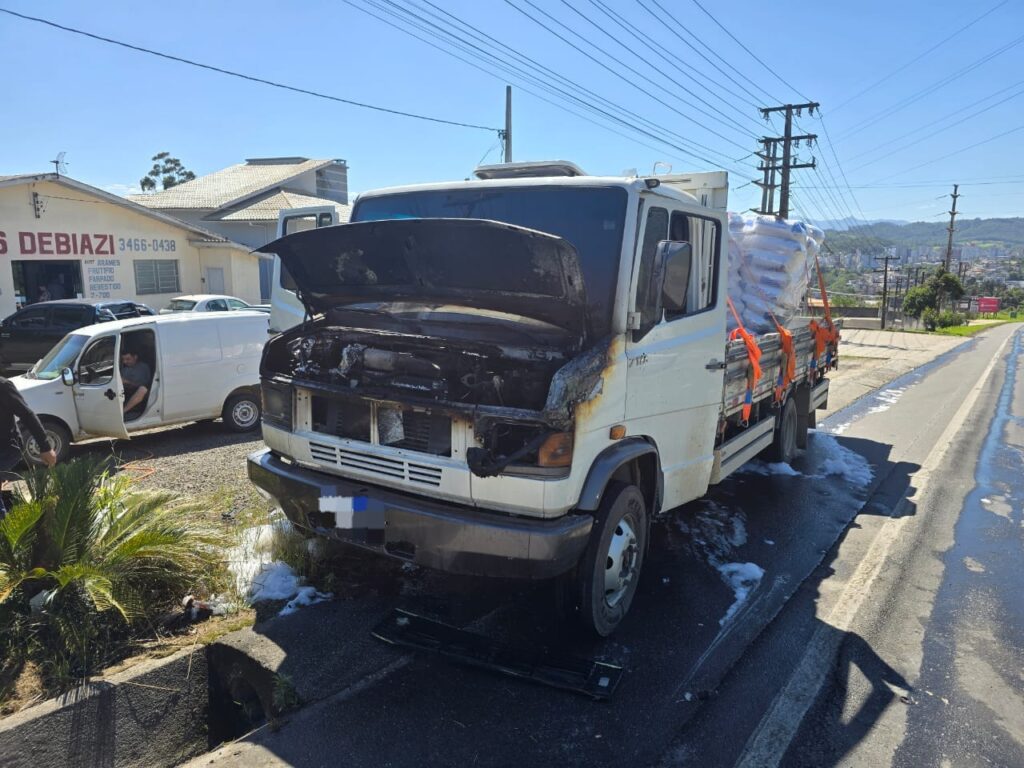 Um incêndio em um caminhão mobilizou o Corpo de Bombeiros Militar de Orleans nessa quarta-feira (22) na rodovia SC-108, no bairro Corridas.