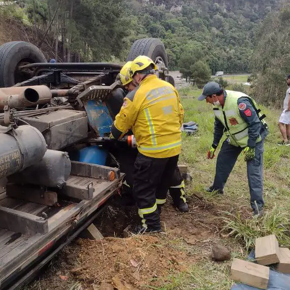 De acordo com o Corpo de Bombeiros, o motorista conduzia um caminhão Mercedes-Benz L 1313, com placas de Torres (RS), carregado de madeira, quando o veículo tombou no km 111 da rodovia. O caminhão ficou parcialmente destruído e o condutor acabou preso sob a estrutura.