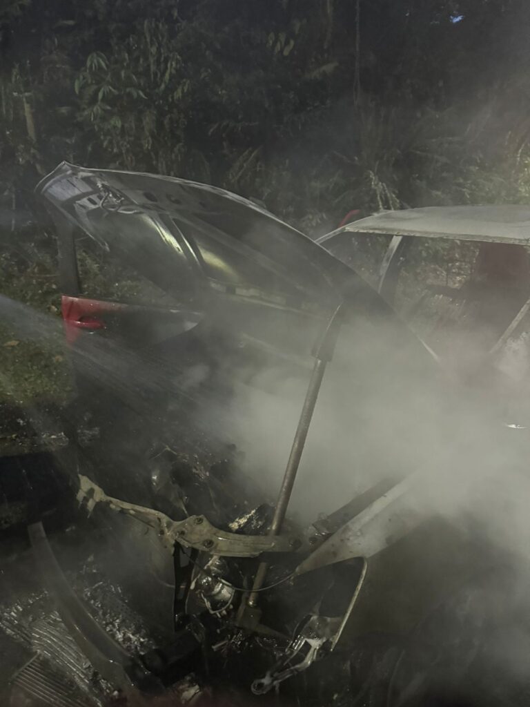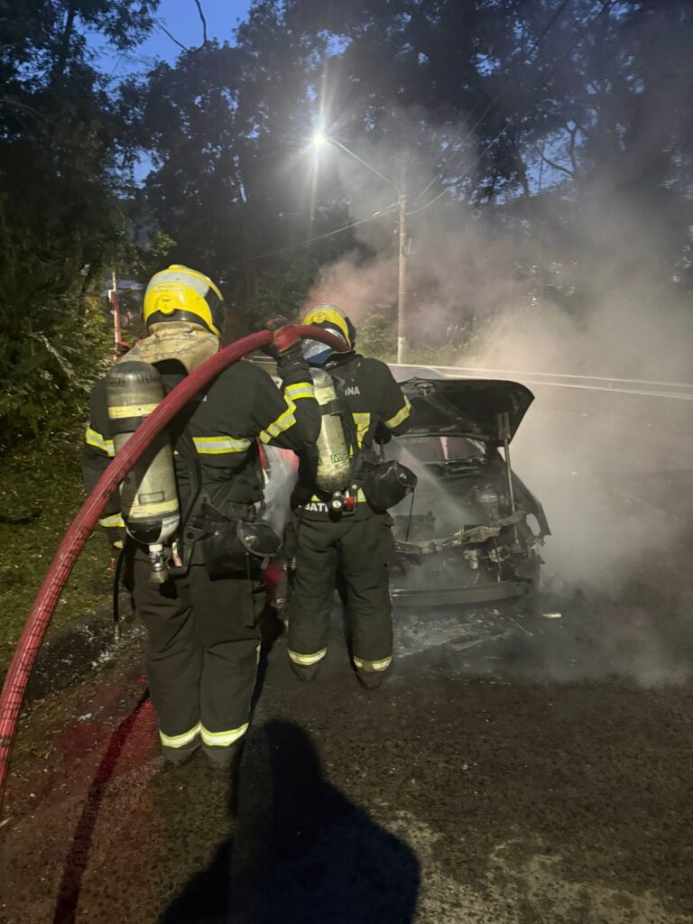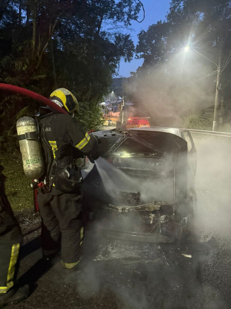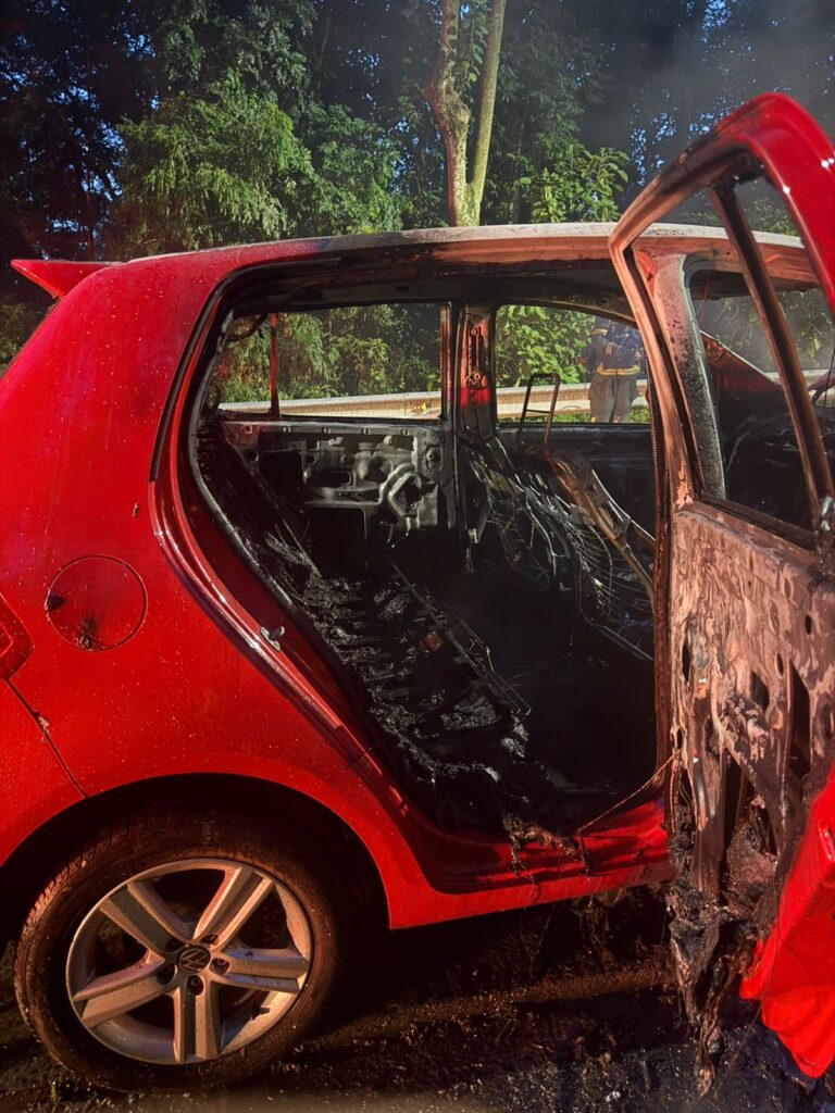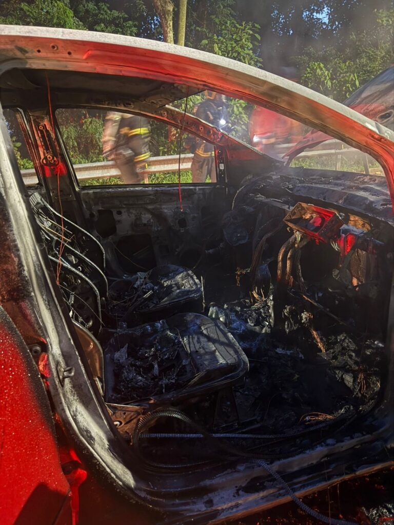 No local, os socorristas encontraram um automóvel modelo Fox estacionado sobre a pista de rolamento, já com as chamas avançadas no compartimento do motor e também no interior do veículo. Para garantir a segurança, a via precisou ser totalmente bloqueada durante o atendimento.