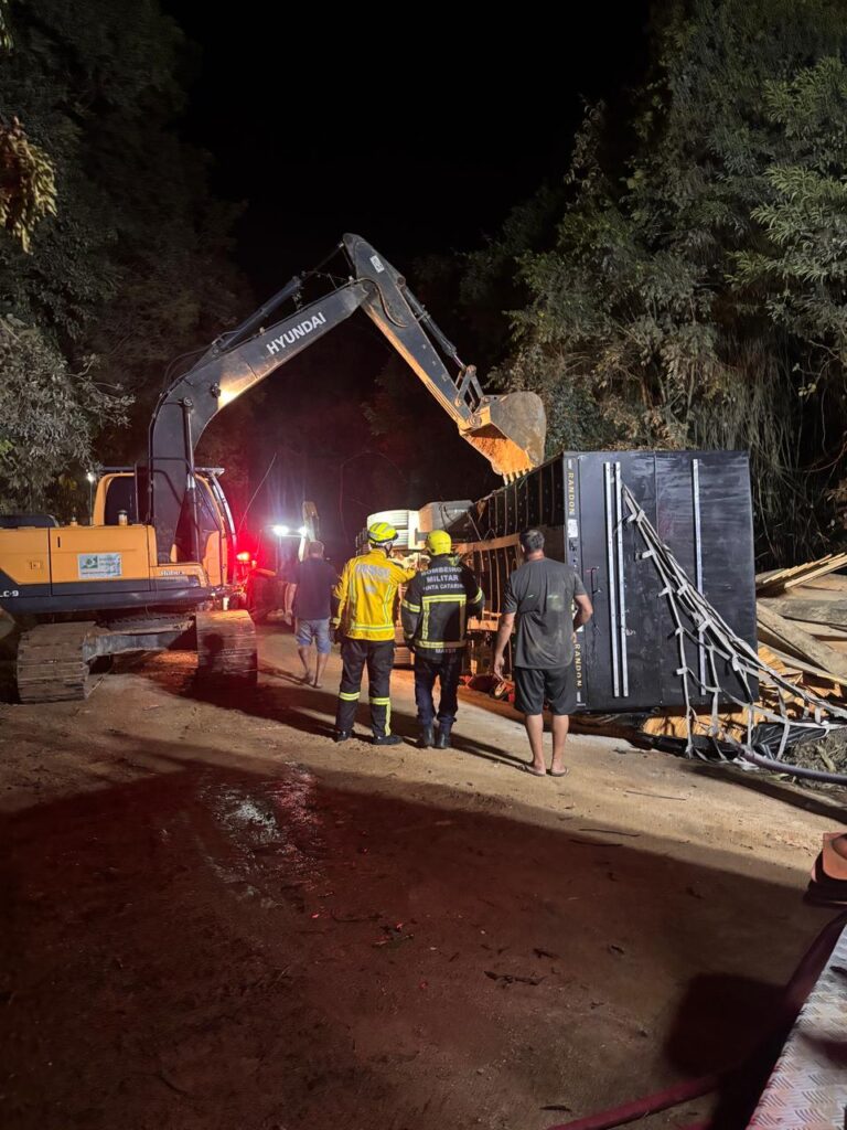 Acidente na SC-435 mobilizou equipes por horas e exigiu uso de maquinário pesado para resgate