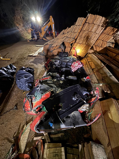 Um grave acidente registrado na madrugada de domingo (22) resultou na morte de um casal no interior de São Bonifácio. A ocorrência foi por volta das 5h30, na rodovia SC-435, no bairro Santa Maria, e envolveu a colisão seguida do tombamento de um caminhão Scania carregado com tábuas de madeira sobre um automóvel.