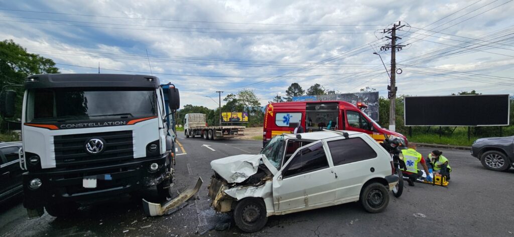 O motorista do Fiat Uno, de 54 anos, também estava consciente e orientado, porém apresentava sangramento ativo no nariz, causado pelo impacto com o para-brisa. Ele foi imobilizado em maca rígida, utilizou colar cervical e foi conduzido ao hospital para avaliação médica.