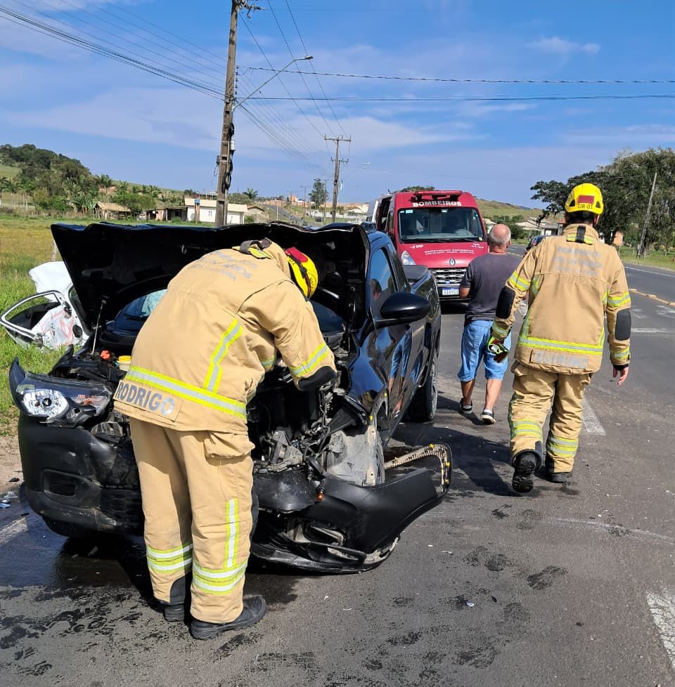 Segundo informações dos Bombeiros Voluntários de Jaguaruna, a colisão envolveu um Chevrolet Onix, com placas de Tubarão, e uma caminhonete Fiat Strada, de Jaguaruna.