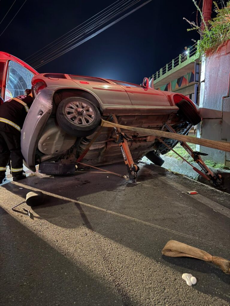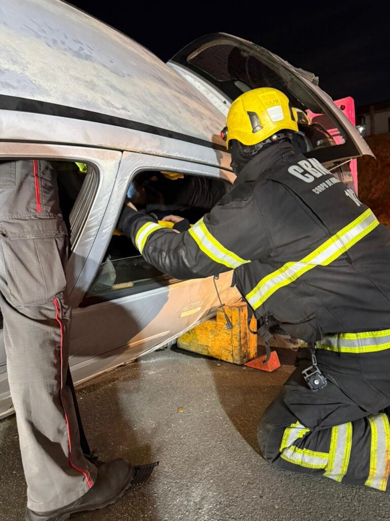 Na sequência, as equipes do ASU-524 e da Unidade de Suporte Básico (USB) do SAMU prestaram atendimento às vítimas, mantendo contato verbal e realizando a estabilização de uma possível fratura no membro superior esquerdo do condutor. Com a chegada da guarnição do ABTR-128, foi feita a estabilização completa do veículo com calços e hastes específicas, garantindo o acesso seguro dos socorristas.