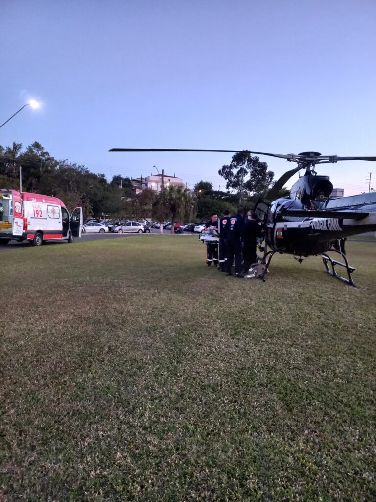 A queda causou um traumatismo cranioencefálico grave, exigindo intervenções imediatas da equipe médica avançada no local. Após a estabilização, a criança foi encaminhada de helicóptero ao Hospital São José, referência no atendimento a traumas na região.