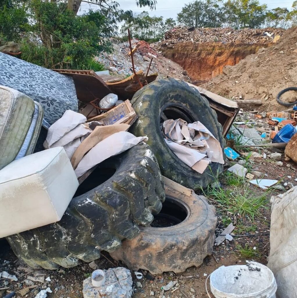 A Polícia Militar Ambiental identificou uma ocorrência de poluição ambiental em uma empresa localizada em Içara, durante vistoria. A empresa, responsável pelo recolhimento de resíduos diversos, principalmente entulhos da construção civil, foi flagrada descartando materiais a céu aberto, diretamente sobre o solo, sem qualquer tipo de impermeabilização.