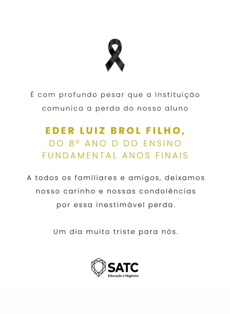 A tragédia abalou a comunidade escolar. Em nota de pesar, a Satc lamentou profundamente a morte do estudante e prestou solidariedade à família, amigos e colegas de turma.