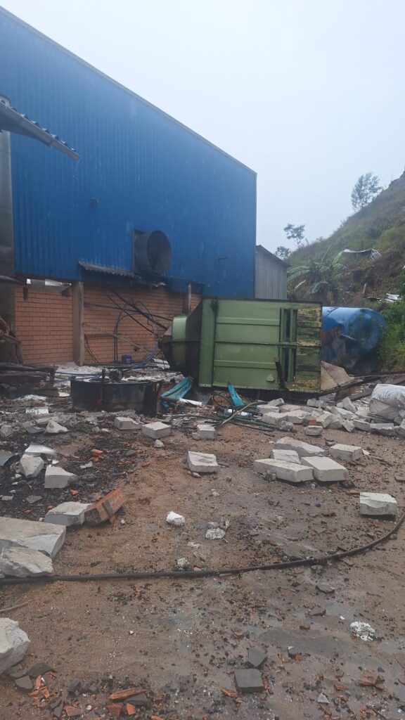Segundo informações do 8º Batalhão de Bombeiros Militar, equipes de Braço do Norte e São Ludgero foram acionadas após o estouro de um tanque da caldeira instalado no interior da empresa. A explosão causou danos significativos à estrutura do local, porém, não houve registro de incêndio.