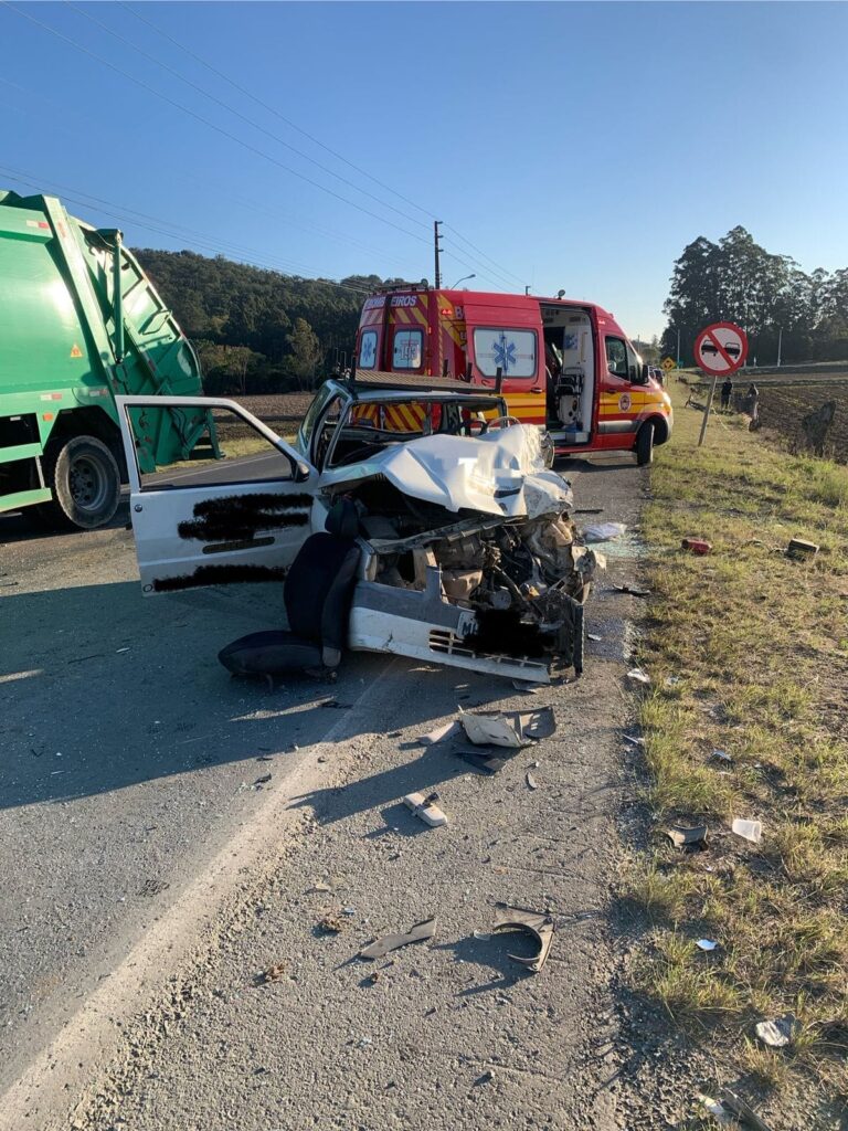 Segundo informações do Corpo de Bombeiros Militar de Santa Catarina (CBMSC), o acidente envolveu um caminhão Ford Cargo e um Fiat Uno, deixando três ocupantes do automóvel encarcerados. O trem de socorro foi acionado via Central de Operações Bombeiro Militar (COBOM), e contou com o apoio das viaturas ASU-549, ASU-311 e da ambulância USA-03 do SAMU.