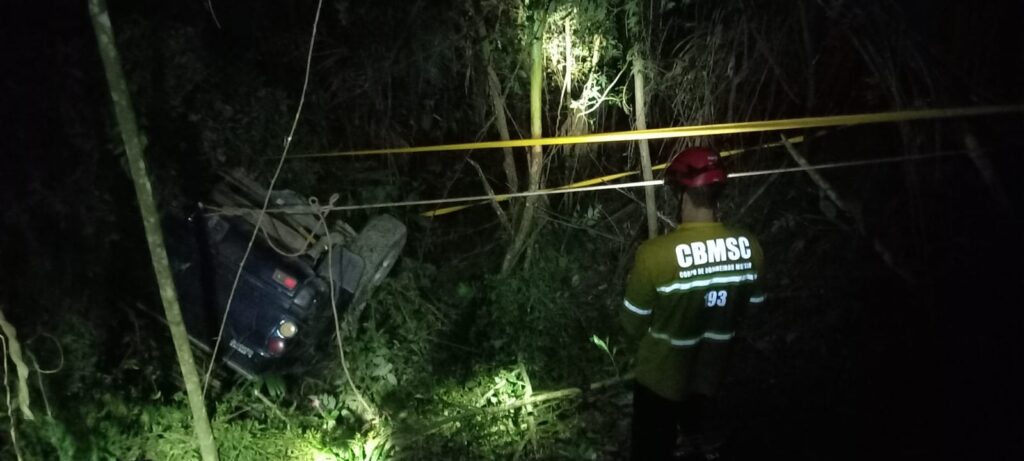 O segundo veículo foi encontrado, com auxílio de moradores a cerca de 15 metros de profundidade na mata. Estava tombado entre as árvores quebradas. No interior do veículo, que estava com portas e janelas fechadas, foi possível observar apenas um ocupante, o condutor de 74 anos, que estava consciente, aparentemente desorientado, apresentando ferimentos com sangramento na cabeça e também nos membros superiores.