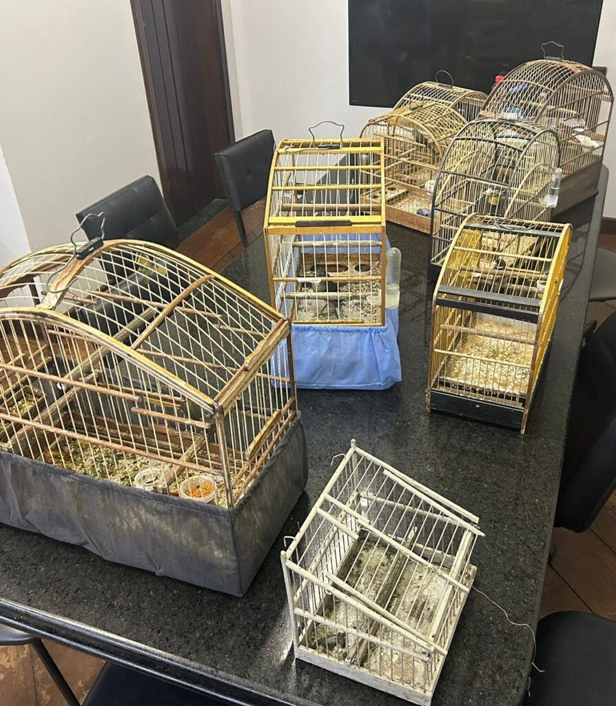 Durante as buscas, o filhote foi encontrado abandonado na rua, molhado pela chuva. No imóvel do suspeito, os policiais ainda localizaram diversas gaiolas com aves silvestres mantidas ilegalmente em cativeiro. Questionado, o homem disse que criava os pássaros “por gostar”.