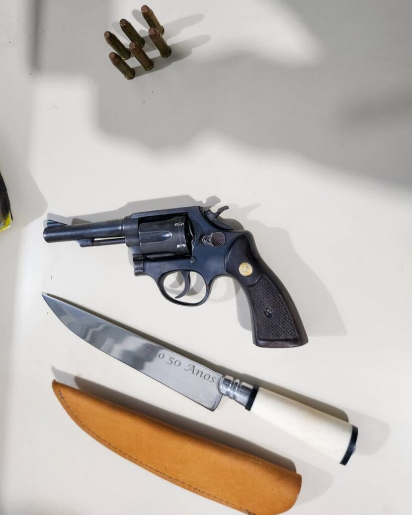Na revista veicular, os policiais encontraram um revólver calibre .38 com numeração suprimida, carregado com seis munições intactas, além de uma faca.