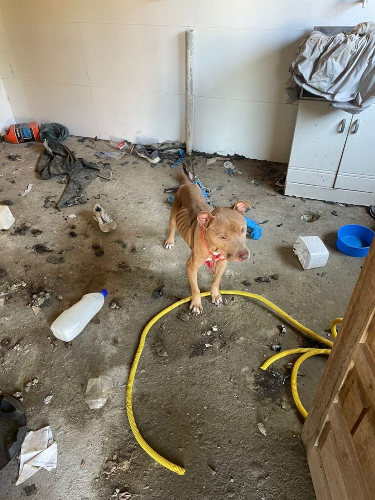 Dois cães da raça pitbull foram encontrados em condições degradantes