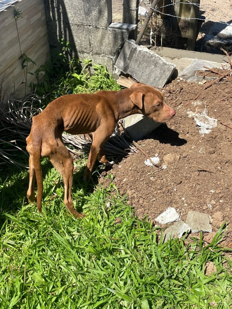 Dois cães da raça pitbull foram encontrados em condições degradantes